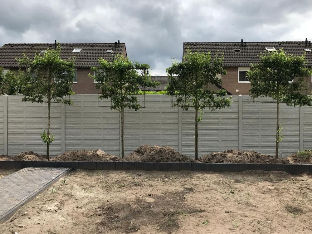 Elegant is verkrijgbaar in diverse tinten zoals lichtgrijs, beton grijs en antraciet. Lichte kleuren zorgen voor een frisse, open uitstraling, terwijl donkere tinten een luxe en modern contrast creëren. Combineer met slanke beton- of aluminium palen voor een extra strak geheel.