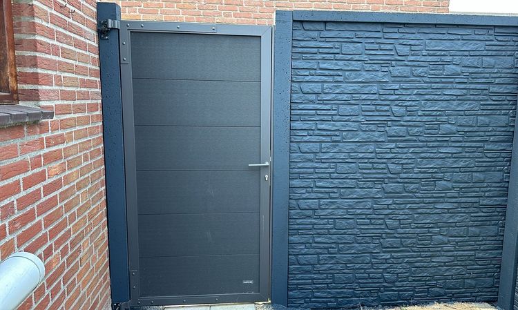 Composieten poorten zijn leverbaar in diverse stijlen en kleuren, van natuurlijke houtlook tinten tot moderne antraciet of grafiet. Je kunt kiezen voor verticale of horizontale lamellen, dichte panelen of een combinatie met metalen accenten voor een robuuste uitstraling. De poort kan worden uitgevoerd als enkele of dubbele deur, met bijpassend beslag zoals cilinderslot, handgreep en scharnieren in een kleur die past bij je schutting.