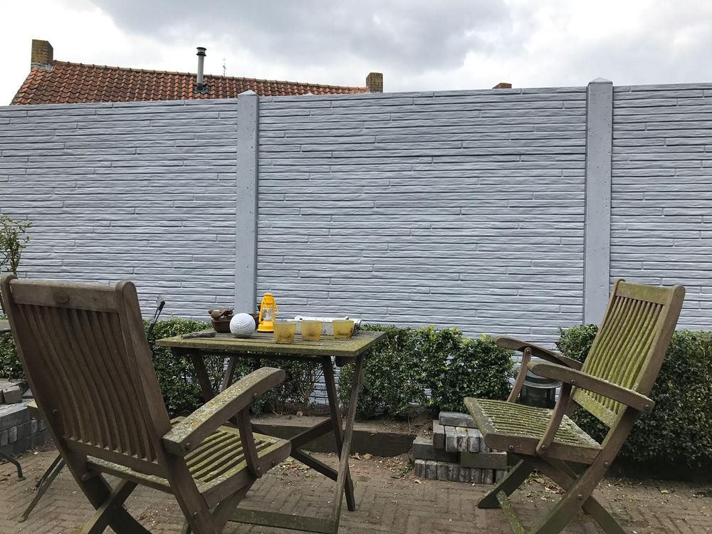 Het motief is verkrijgbaar in kleuren zoals antraciet, grafiet of lichtgrijs. Donkere tinten versterken het luxe, moderne karakter, terwijl lichtere kleuren zorgen voor een frisse en natuurlijke uitstraling. Combineer met bijpassende betonpalen voor een strak geheel of voeg hout toe voor extra warmte.